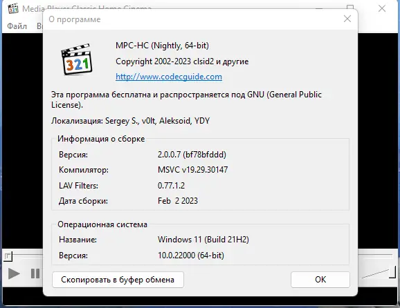 | Дополнительно | Поддержка DirectShow, OpenSUSE, Windows Media Foundation |