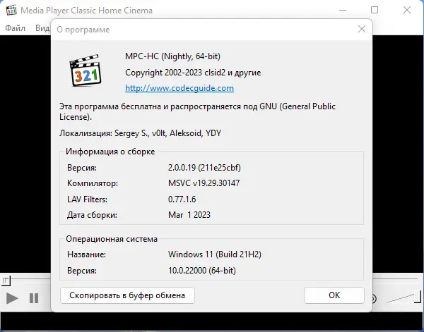 - Интеграция с популярным медиаплеером MPC-HC, обновлённым до последних версий.