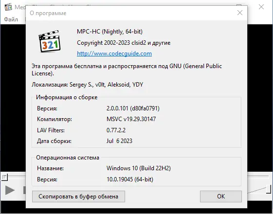 Дополнительно | Обновление MediaInfo Lite до версии 23.06, поддержка последних обновлений MPC-HC |