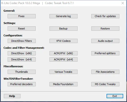 Компоненты этого набора позволяют без дополнительных настроек воспроизводить практически все форматы видео и аудио, включая как распространённые, так и редкие форматы. Обновляемое через регулярные обновления, решение поддерживается актуальным и совместимым с современными версиями Windows.