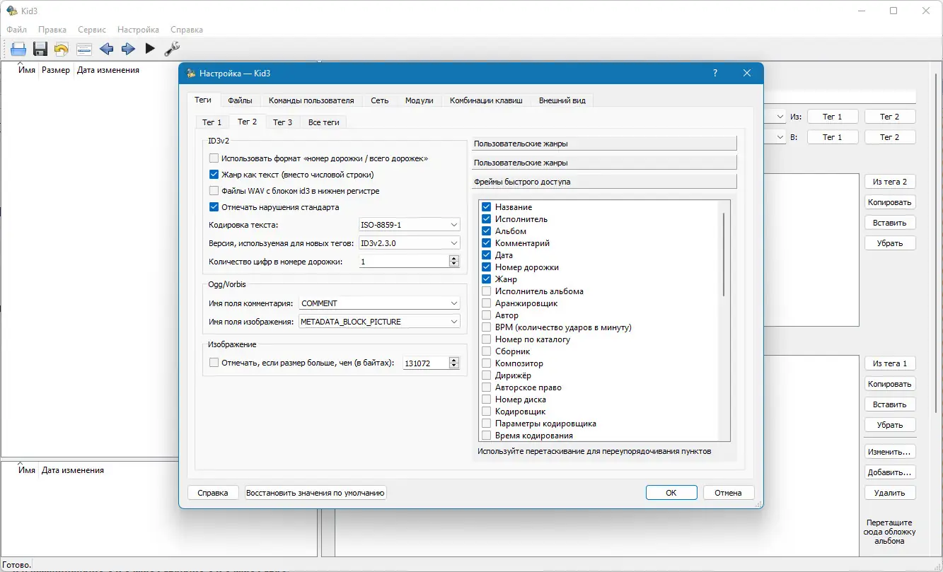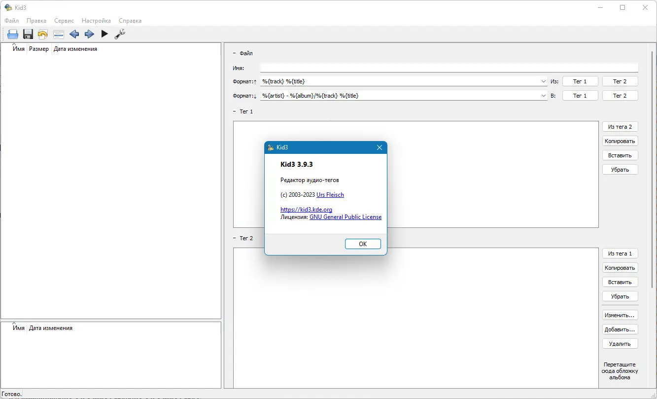 Kid3 — бесплатный и портативный инструмент для редактирования тегов аудиофайлов, совместимый с операционной системой Windows. В отличие от многих аналогов, эта версия не требует установки и может быть запущена из любой директории, что делает её удобной для быстрого редактирования без дополнительных настроек.