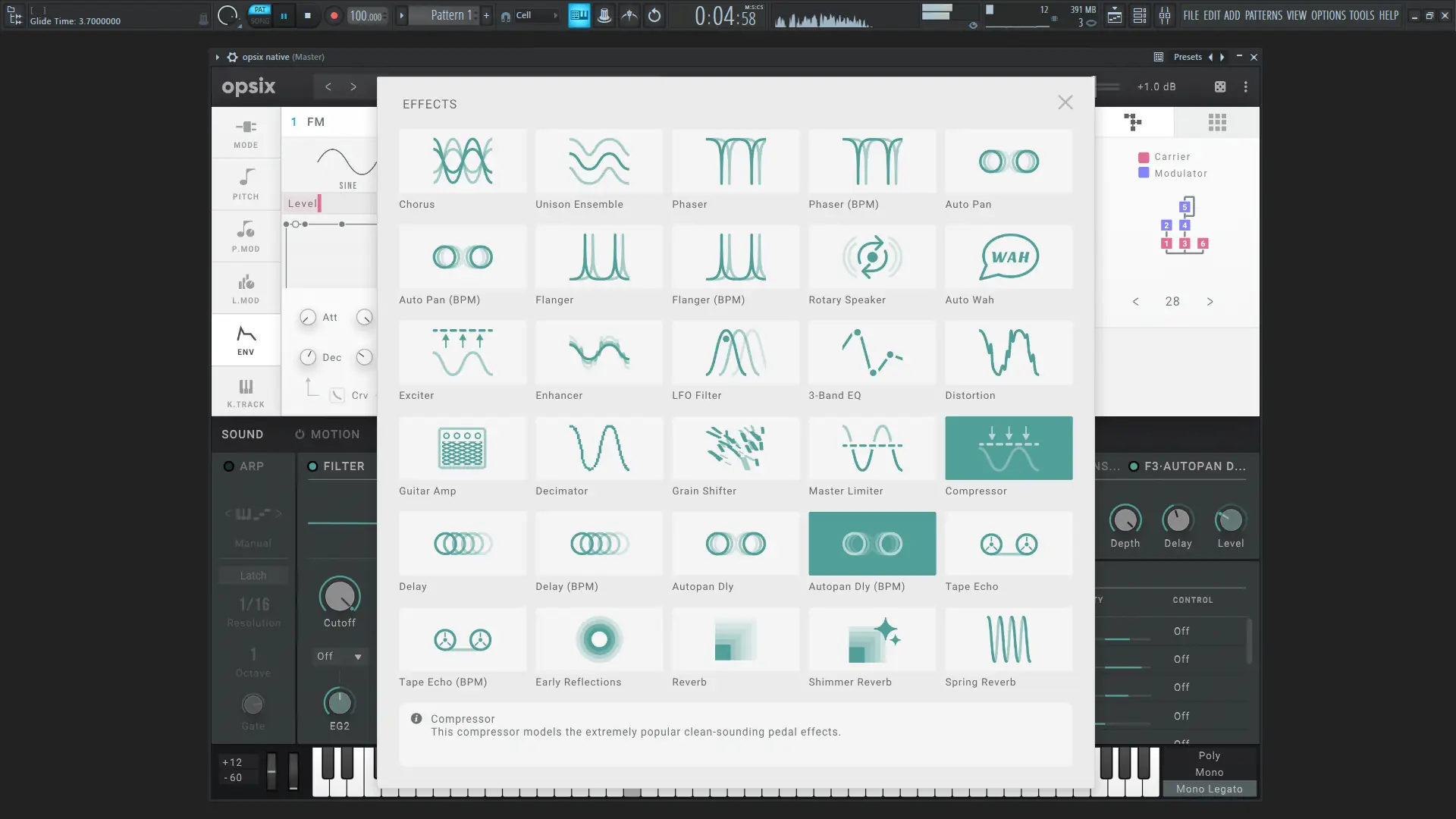 В Opsix Native реализована полнофункциональная модульная архитектура с шестью операторами и 40 предустановленными алгоритмами, позволяющими воспроизводить фирменные звучания 80-х и современные стили. Кроме того, встроенный пошаговый секвенсор с поддержкой до шести нот на шаг и возможностью редактирования параметров делает его незаменимым инструментом для музыкальных продюсеров и композиторов. Множество режимов модуляции, секвенсор движения и 12 виртуальных патчей позволяют создавать сложные ритмические паттерны и динамические звуковые ландшафты.