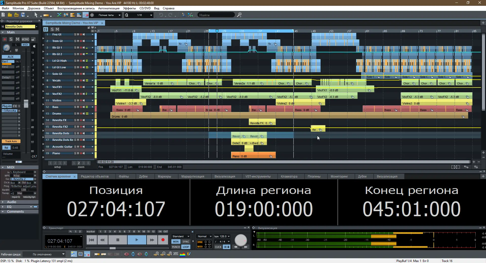 Samplitude Pro X – это мощное решение для звукозаписи, редактирования и сведения звука, предназначенное для профессионалов аудиоиндустрии. Оно позволяет редактировать в процессе записи, применять эффекты к отдельным клипам, визуализировать параметры громкости, частоты и фазовых сдвигов, а также использовать полностью настроиваемые интерфейсы и автоматизацию. Это программное обеспечение отвечает требованиям studio и музыкальных продюсеров, предлагая уникальные функции, революционизирующие классические DAW-процессы.