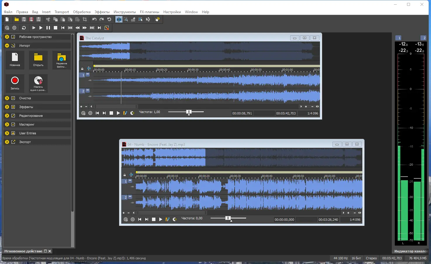 - Мастеринг, профессиональные плагины и эффекты для обработки и улучшения качества звука.
