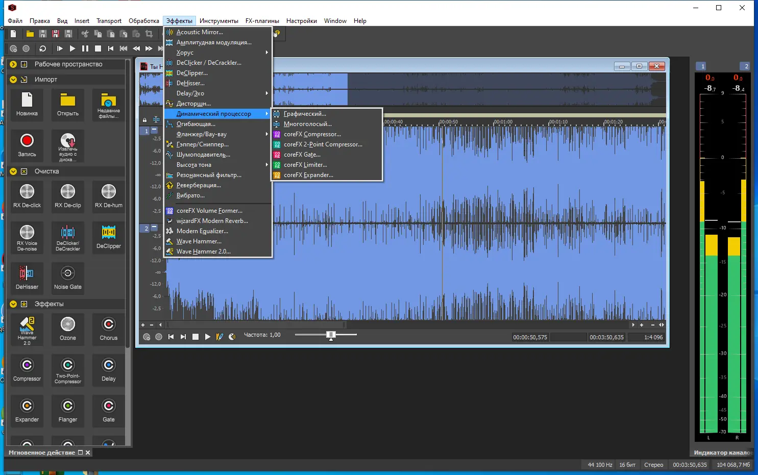 - Мастеринговые эффекты и плагины высокого качества для финальной обработки и восстановления аудиоматериала.
