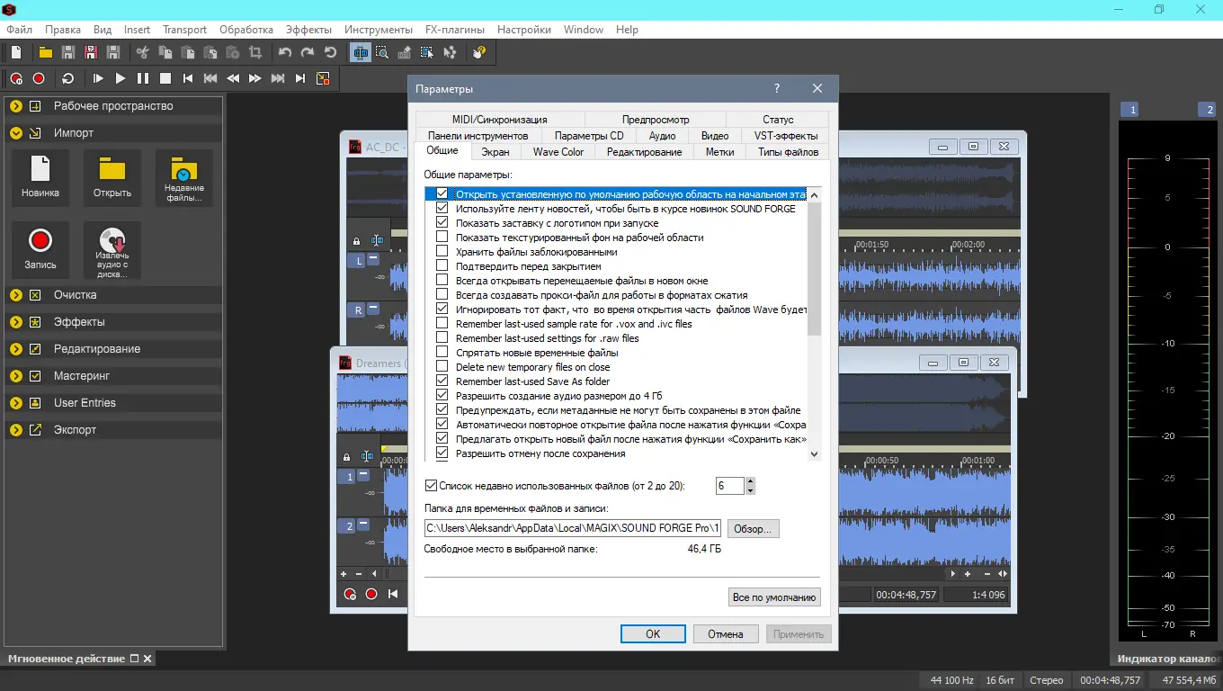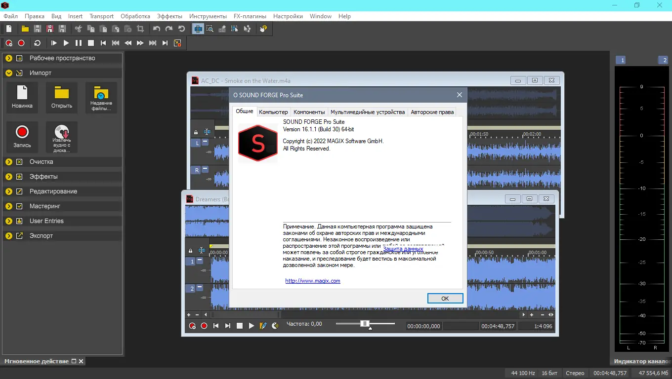 Для комфортной работы с MAGIX Sound Forge рекомендуется соответствовать следующим минимальным требованиям: