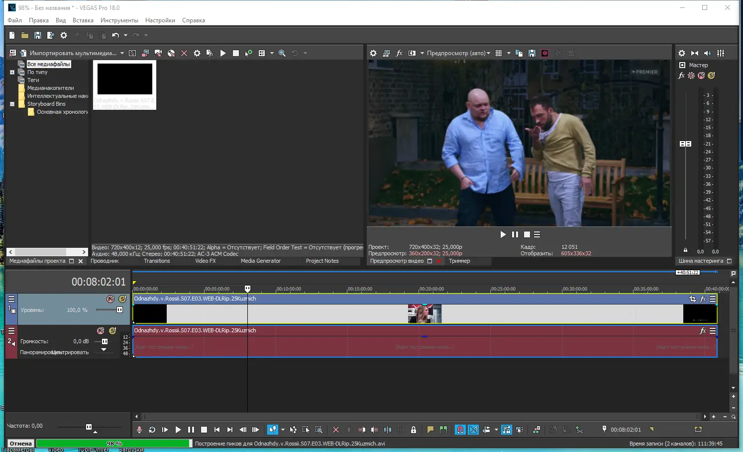 Обратите внимание, что после закрытия VEGAS Pro.exe процесс может остаться в системе — его следует завершить через диспетчер задач.