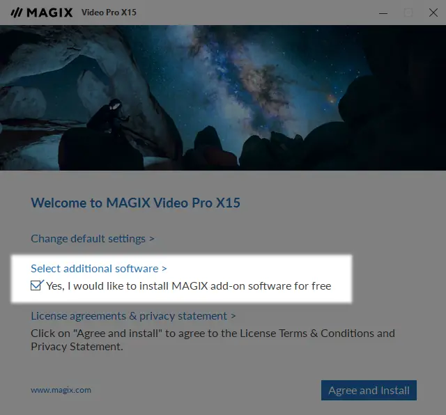 - Установите базовую версию с помощью файла Video_Pro_X15_21.0.1.193_DLV_INT.exe, предварительно отключив запуск программы после завершения установки.
