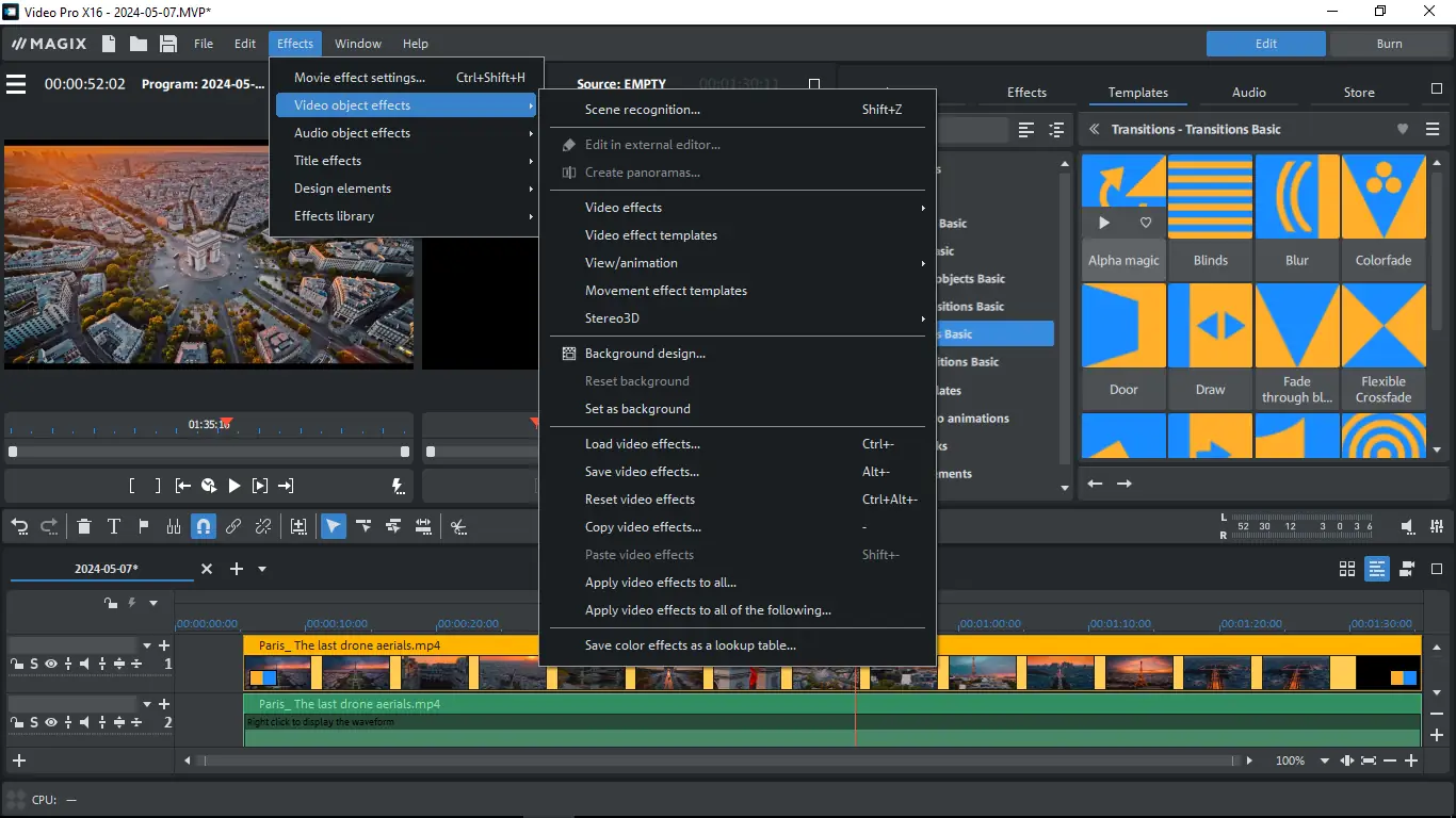MAGIX Video Pro – это инструмент для профессионального видеомонтажа, объединяющий интуитивный интерфейс и передовые технологии редактирования. Благодаря движку INFUSION Engine 3, программа обеспечивает плавное воспроизведение и работу с видеоматериалом в разрешении 8K UltraHD в режиме реального времени. Она идеально подходит как для высококлассных видеографов, так и для тех, кто хочет добиться кинематографического качества своими проектами.