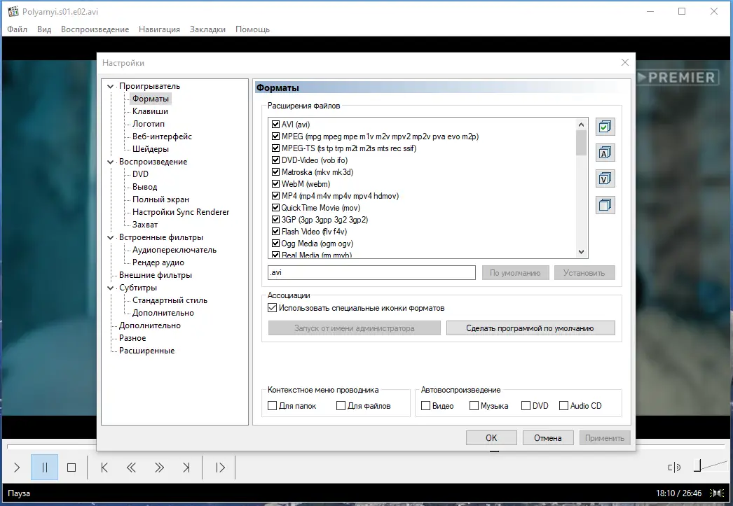 - Работа с субтитрами: настройка, поддержка различных форматов и внешних файлов