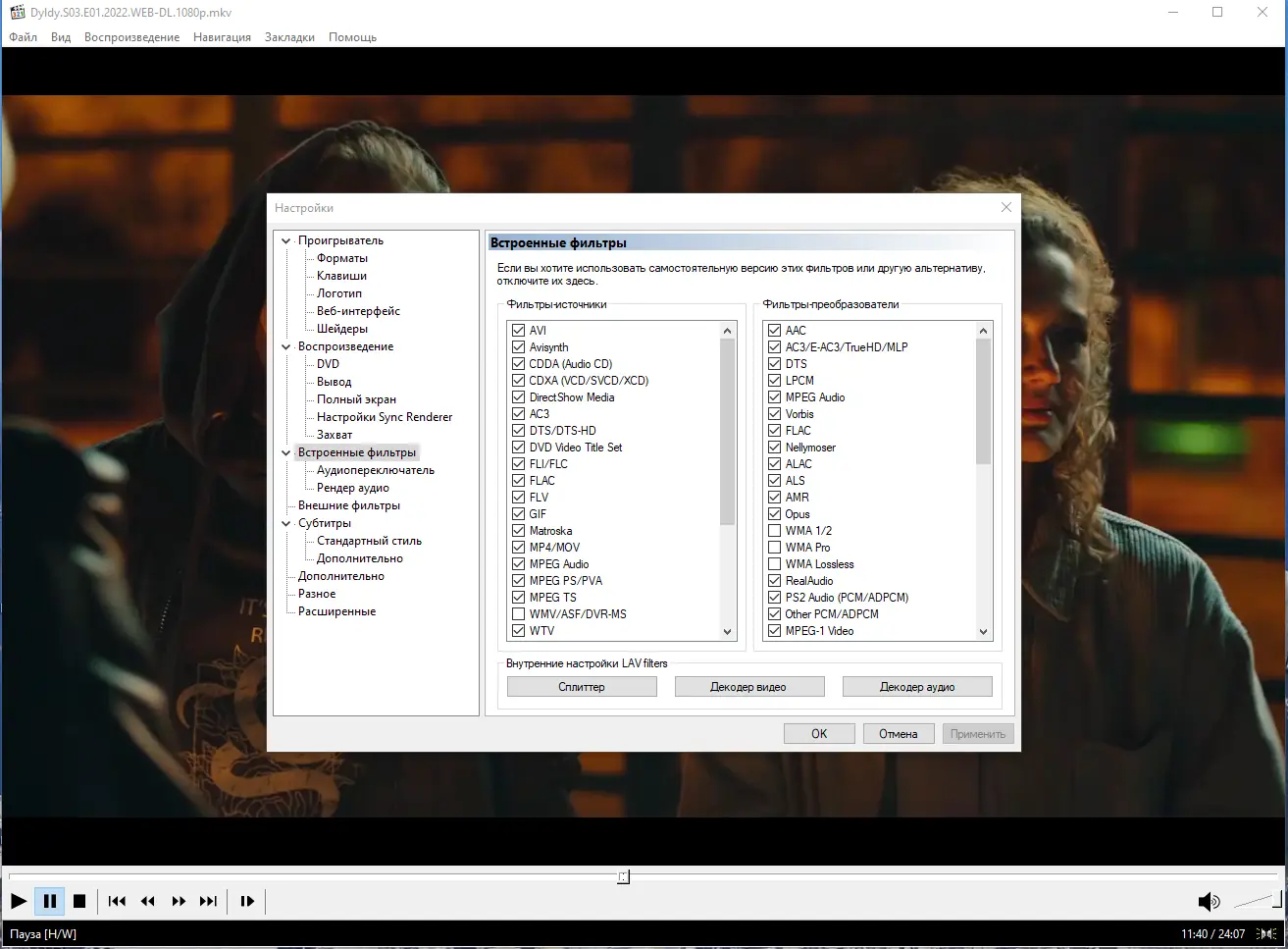 - Поддержка форматов, основанных на DirectShow, таких как DivX, XviD и H.264.