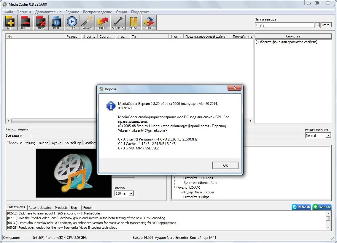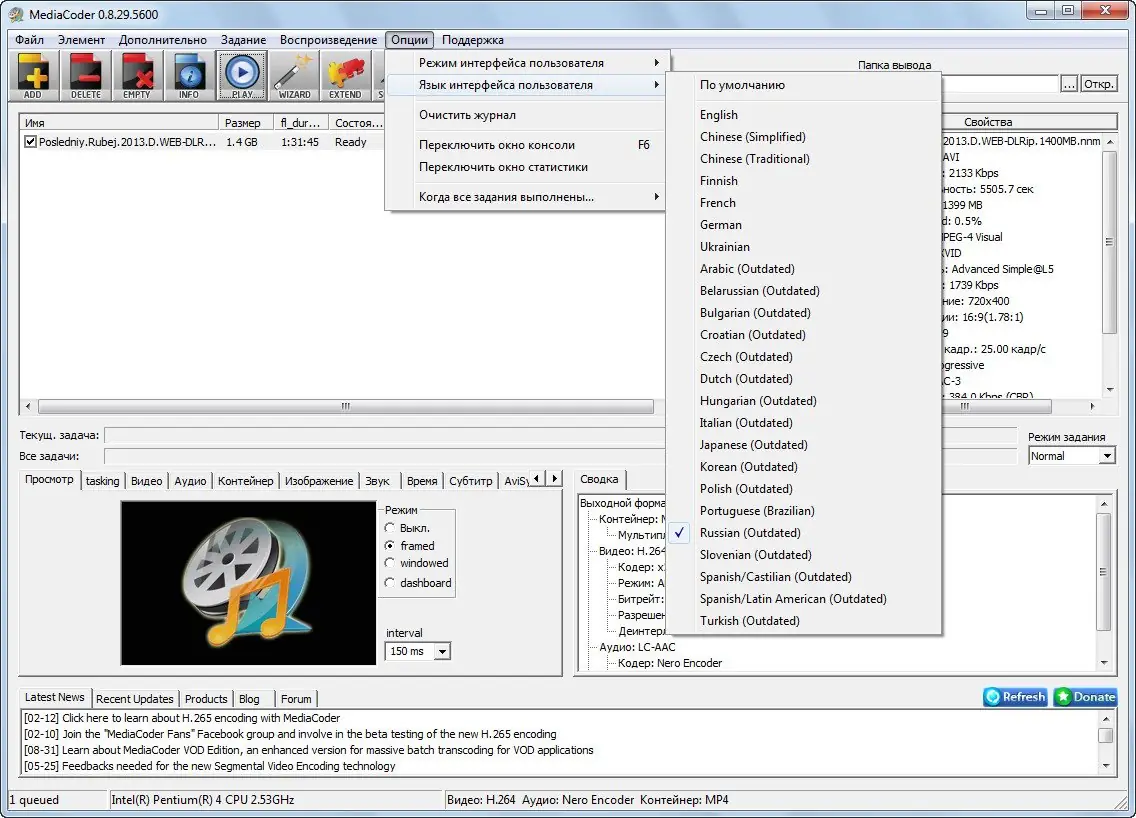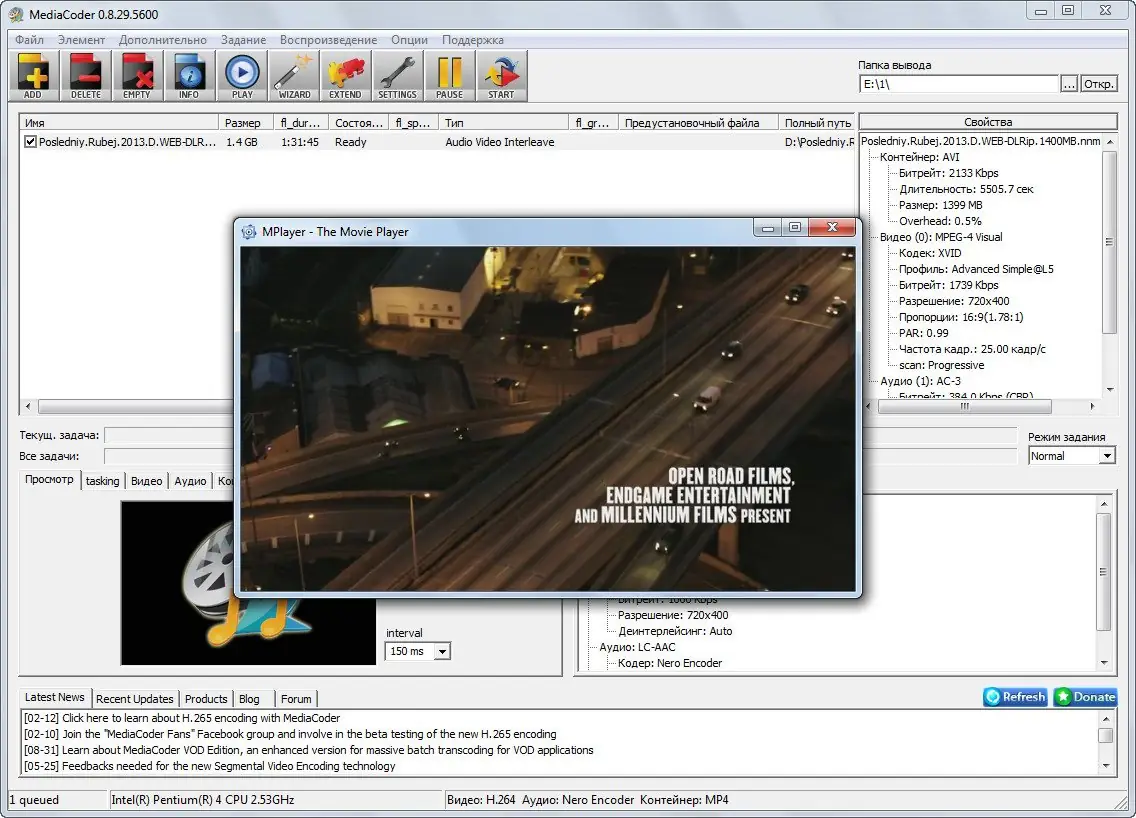 Медиакодер — универсальный программный транскодер, активно развивающийся с 2005 года, объединяющий современные аудио и видео технологии для максимально точного и качественного преобразования медиафайлов.
