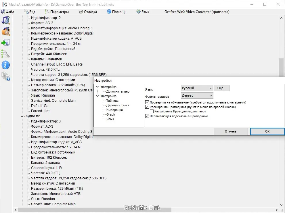 - Анализ множества форматов: MKV, AVI, MP4, MOV, MP3, WAV, AC3, DTS, субтитры: SRT, SSA и другие.