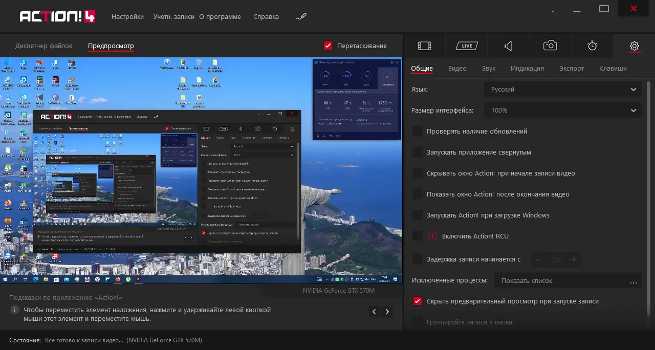 Для корректной работы Mirillis Action рекомендуется иметь современное оборудование и актуальную версию Windows. Обратите внимание, что программа работает на системах Windows 7, 8/8.1, 10 и 11, как в x32, так и в x64 битных версиях.