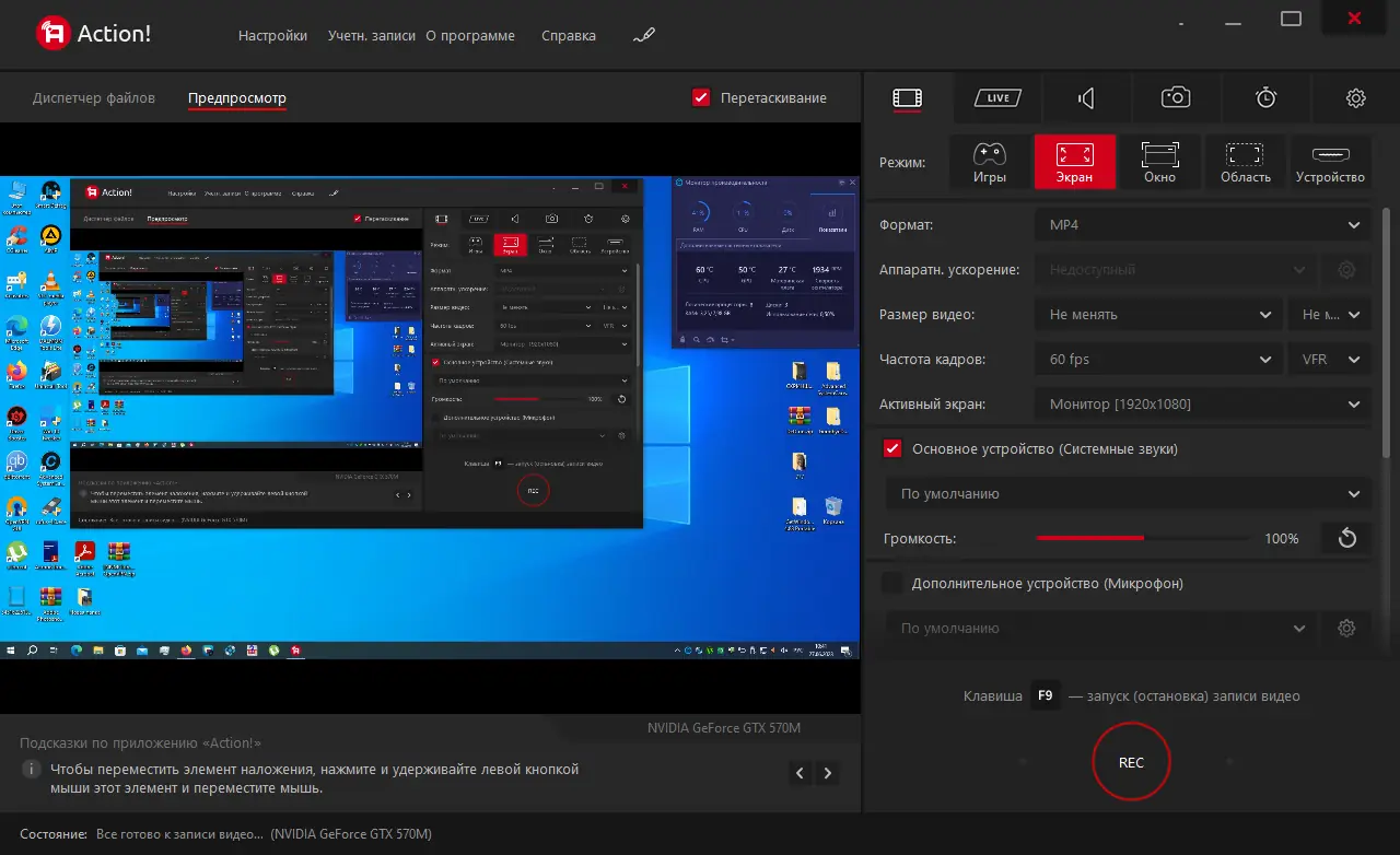 Программа для записи игр «Action!» предлагает широкий набор функциональных возможностей, обеспечивающих легкое и быстрое создание видео High-Definition. Благодаря интуитивно понятному интерфейсу пользователь мгновенно находит нужную функцию, а встроенные инструменты позволяют легко делиться результатами на популярных видеопорталах. При этом программа не требовательна к ресурсам системы, использует передовой движок записи, который с высокой производительностью работает минимум ресурсов процессора и видеокарты. Это обеспечивает плавное видео и стабильную работу даже на средних ПК. Установка не вызывает затруднений, однако стоит помнить о необходимости снятия галочки с рекламного ПО на первом этапе инсталляции.
