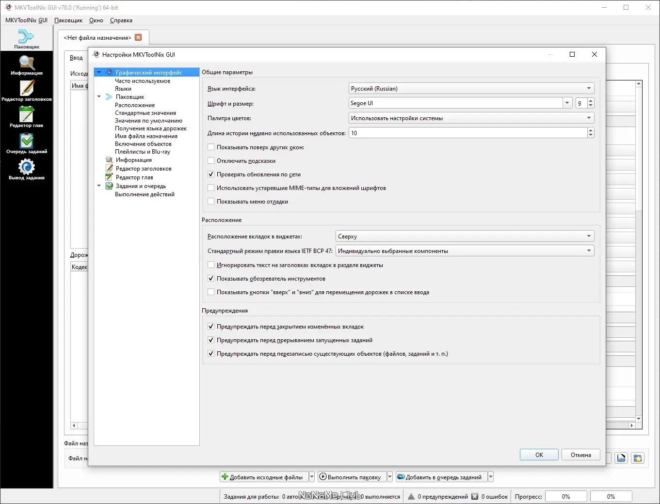 MKVToolnix — мощный набор инструментов для работы с видео-файлами формата MKV. Обеспечивает быстрый и удобный способ редактирования мультимедийных контейнеров, включая добавление или удаление звуковых дорожек, субтитров, а также склейку и нарезку файлов.