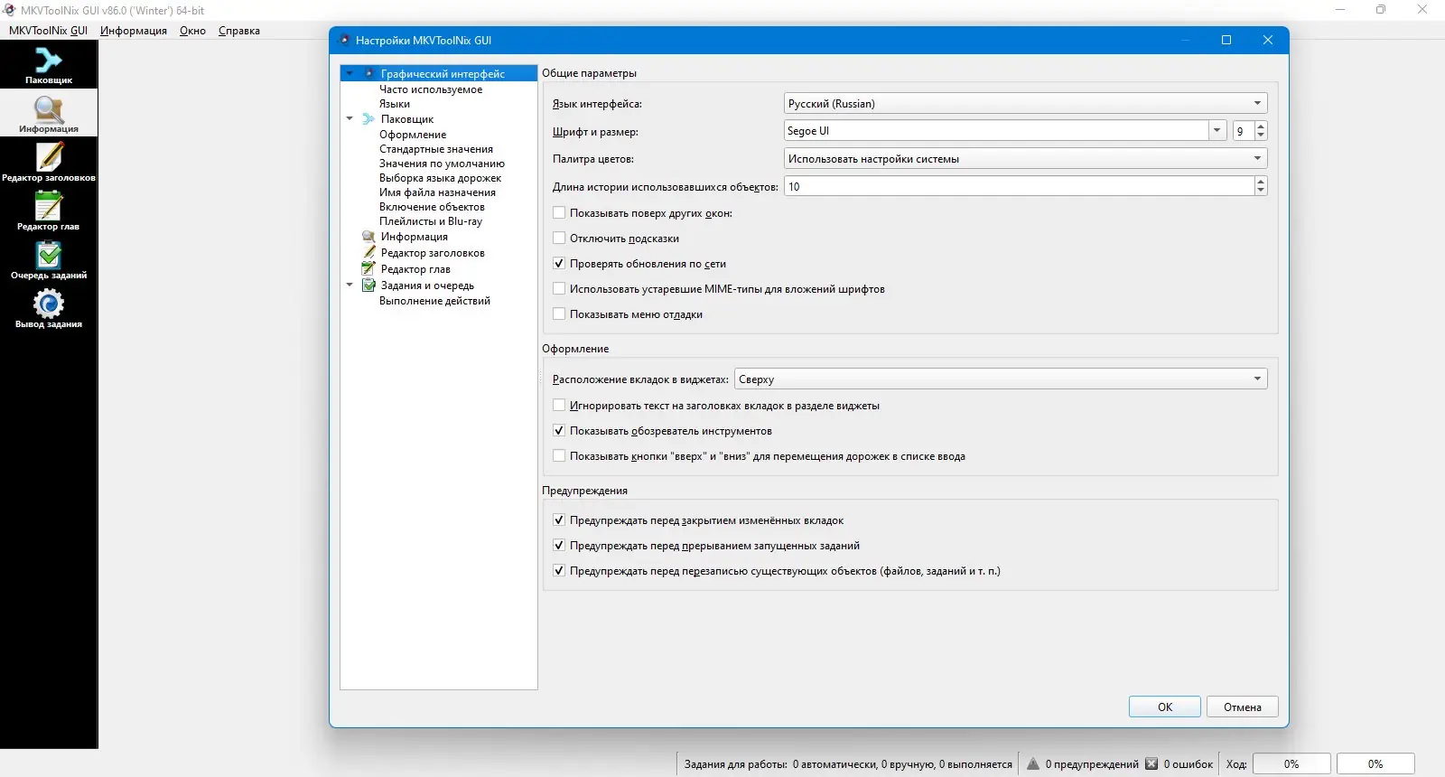 MKVToolnix — это мощный набор инструментов для обработки мультимедийных файлов формата MKV, позволяющий профессионалам и любителям удобно редактировать видео и аудио дорожки.