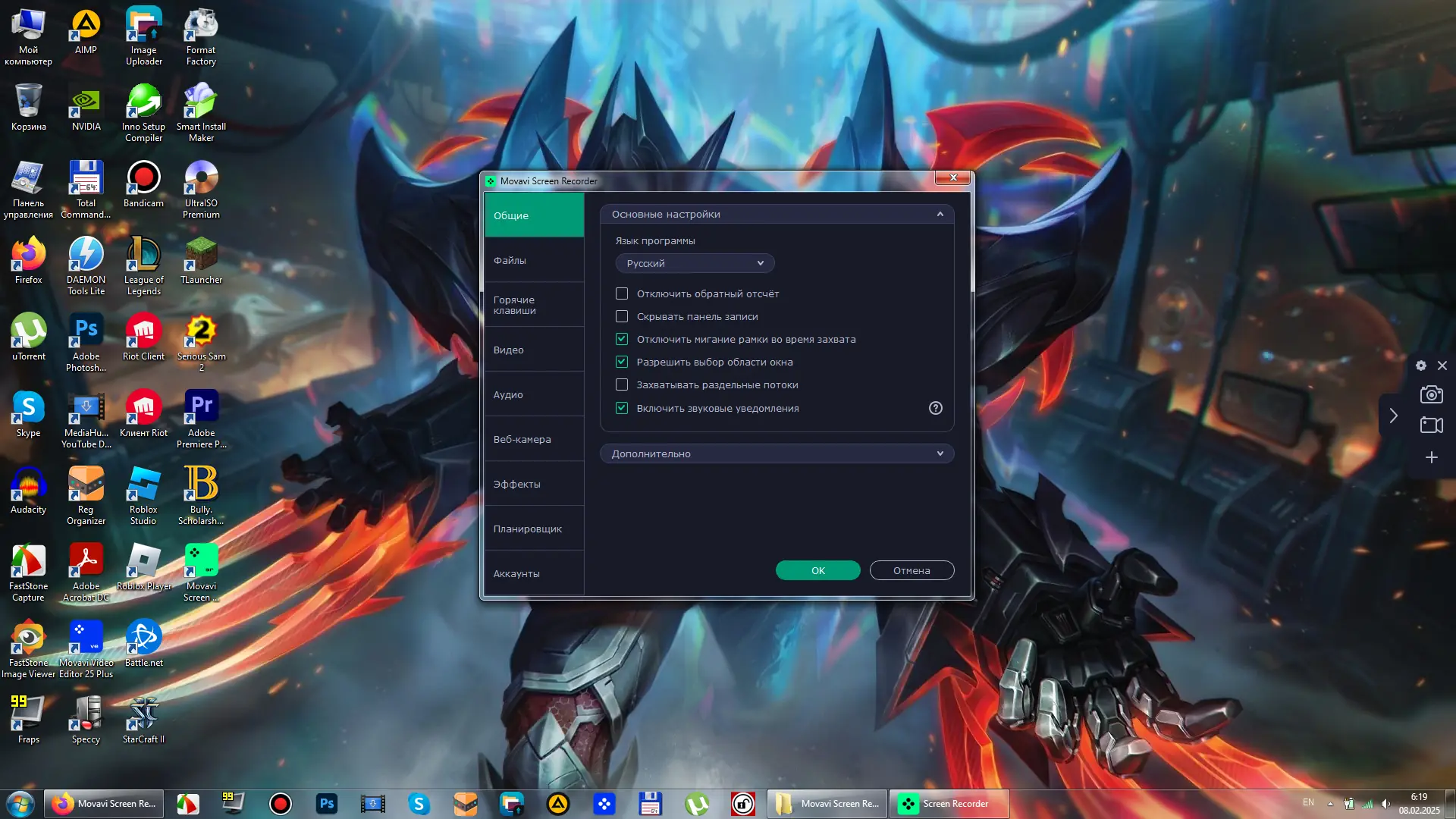 - Захват видео с экрана выбранной области, всего экрана или отдельного окна