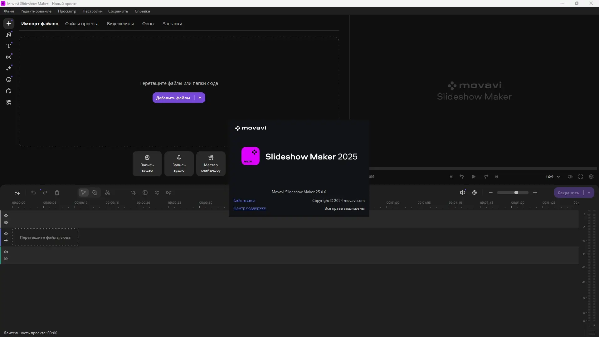 Movavi Slideshow Maker – это мощный инструмент для создания слайд-шоу, который подойдет как новичкам, так и опытным пользователям. Интуитивный интерфейс и богатый набор функций позволяют легко загружать изображения и видео в любых форматах, соединять их анимационными переходами, добавлять музыку и титры, а также применять разнообразные фильтры и спецэффекты. Программа не требует профессиональных навыков, благодаря чему вы сможете быстро и просто создавать качественные видеоролики, которые можно просматривать на различных устройствах или публиковать в интернете.