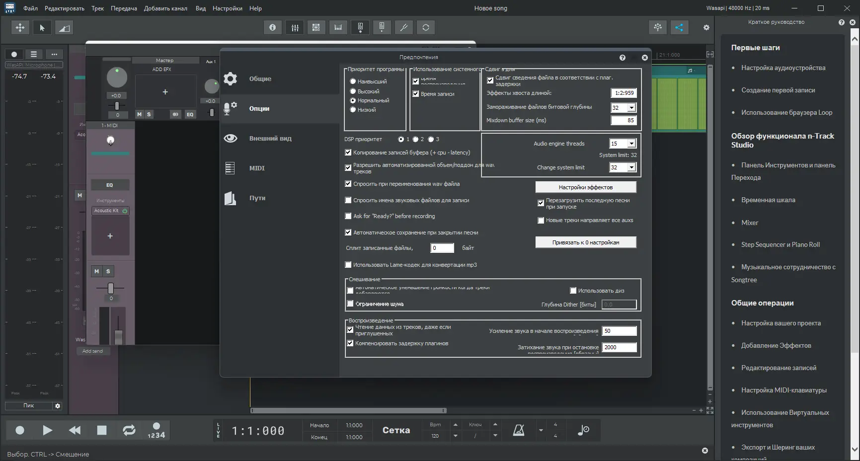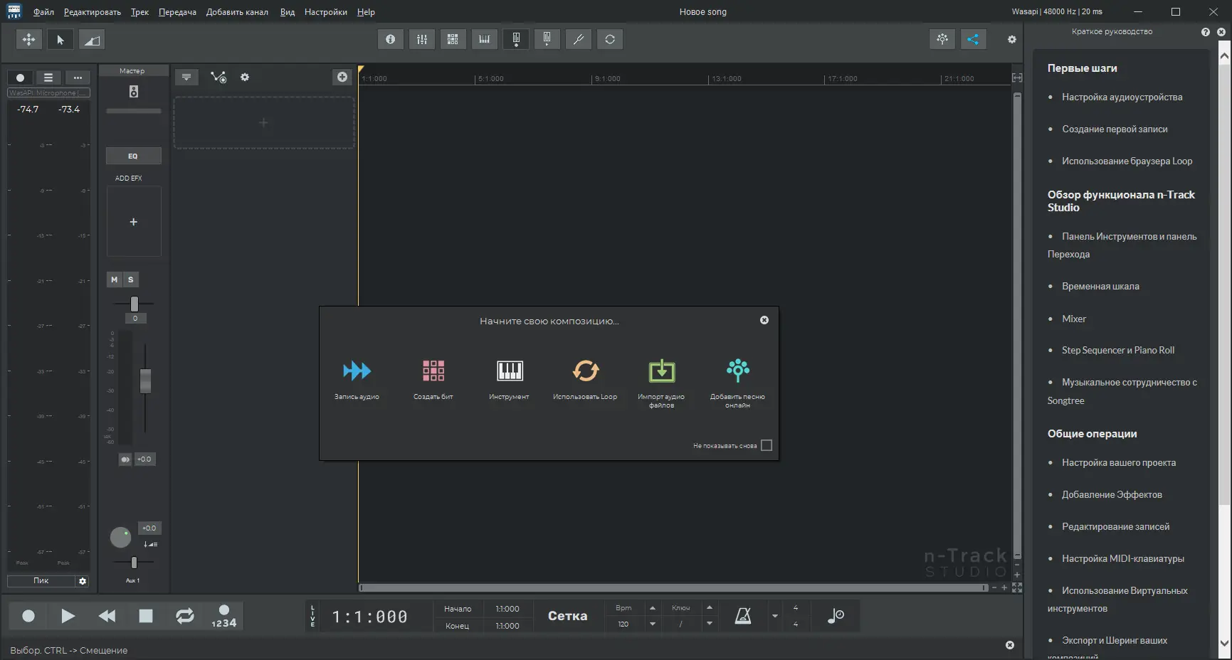 n-Track Studio — профессиональный кроссплатформенный аудиоредактор с возможностью многодорожечной записи и редактирования звука и MIDI. Программа поддерживает широкий спектр виртуальных инструментов и эффектов, что делает её универсальным инструментом для создания, микширования и мастеринга музыкальных проектов.