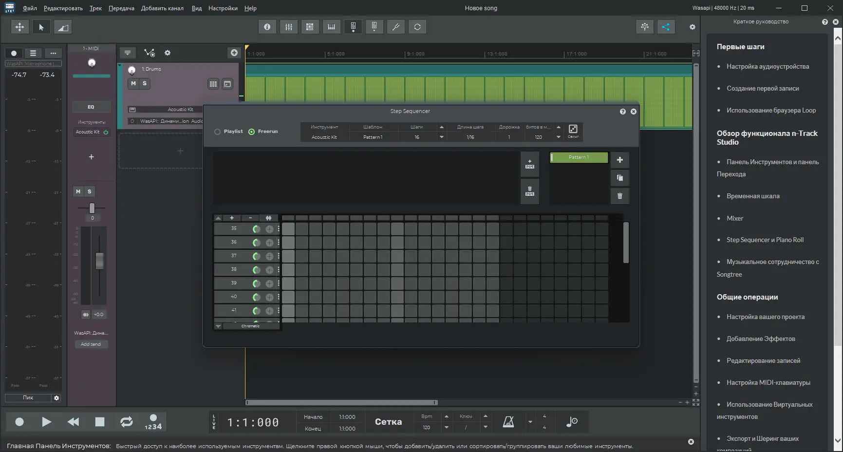 - Интуитивный Piano Roll и Step Sequencer для работы с MIDI-данными