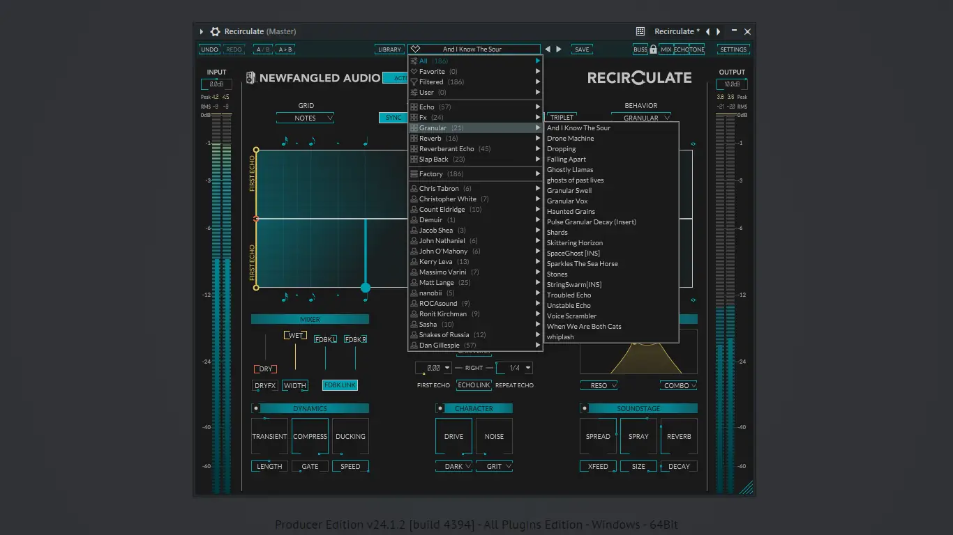 Newfangled Audio — Recirculate — это не просто дилей плагин; это квинтэссенция того, каким должно быть эхо с обратной связью. Отфильтровав лишние детали и сосредоточившись на качестве звука и управляемости, разработчики создали инструмент, позволяющий легко и быстро достигать сложных ритмических паттернов. Благодаря интуитивному интерфейсу и богатому набору функций, данный vst предлагает широкие возможности для креативных экспериментов и профессиональной обработки звука.