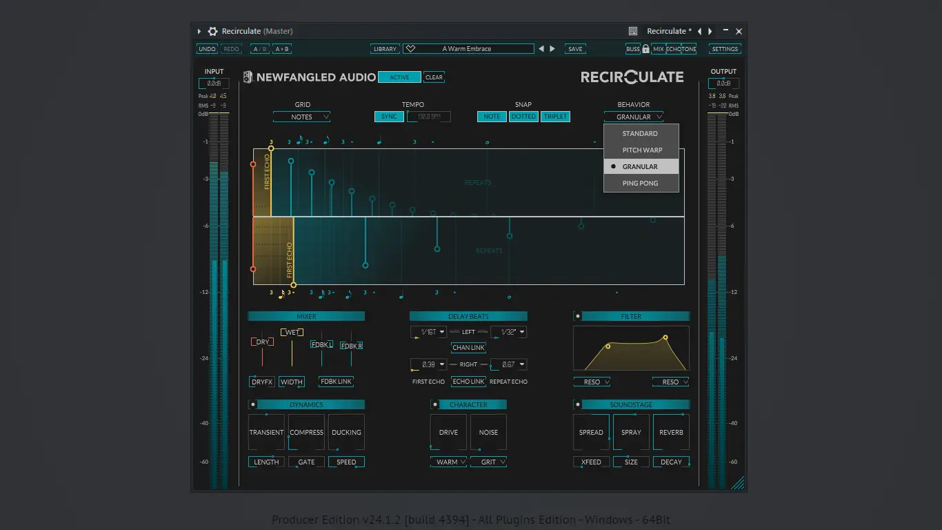 Recirculate — это универсальный и мощный эффект задержки, который позволяет создать насыщенные и глубокие эхо-эффекты с широкой палитрой настроек. Этот плагин идеально подходит для музыкантов и продюсеров, стремящихся придать своим миксам объем и выразительность.