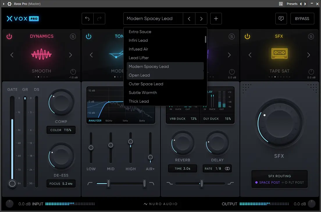 Nuro Audio — Xvox поставляется с шести мощными плагинами, среди которых Xvox Pro, Xvox Comp, Xvox DS, Xvox Tone, Xvox Space и Xvox SFX. Это самый полноформатный набор для микширования вокала, способный предложить профессиональный уровень звука с высокой гибкостью настройке. Интуитивно понятный интерфейс позволяет быстро добиться желаемого звучания и существенно сократить время на обработку, что делает его одним из самых эффективных решений в области вокальной пост-обработки.