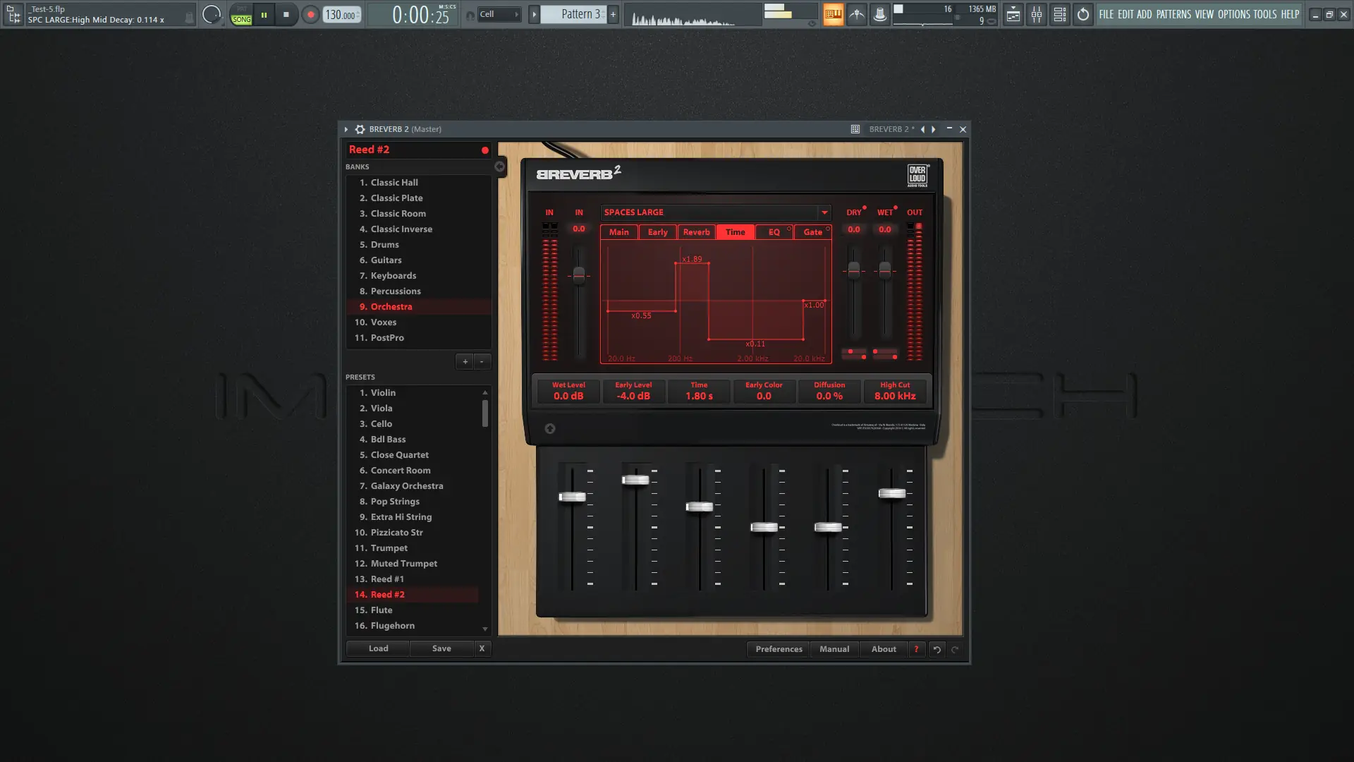 - Полный контроль над каждым параметром, а также возможность тонкой настройки частотной характеристики реверберации.