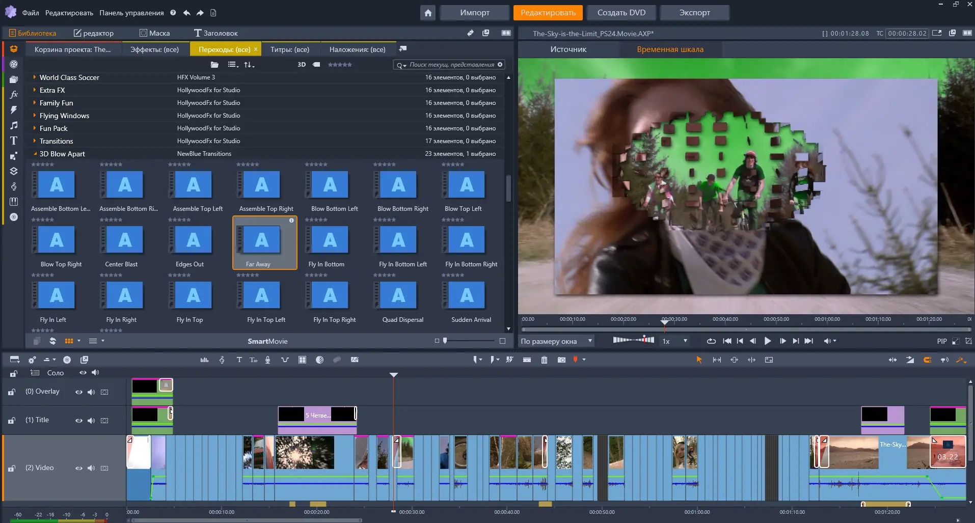 Данная версия обеспечивает редактирование видео в 4K и 360°, поддержку альфа-канала, а также такие современные функции, как отслеживание движения, монтаж ключевых кадров, видео-маски и динамические графические наложения. В дополнение, программа обладает улучшенной скоростью работы, редактором титров и оптимизированным рабочим процессом, что значительно повышает эффективность создания видеопродукта. Возможности экспорта включают сохранение с альфа-каналом и экспорт 360° видео, что идеально подходит для современных медиаформатов.