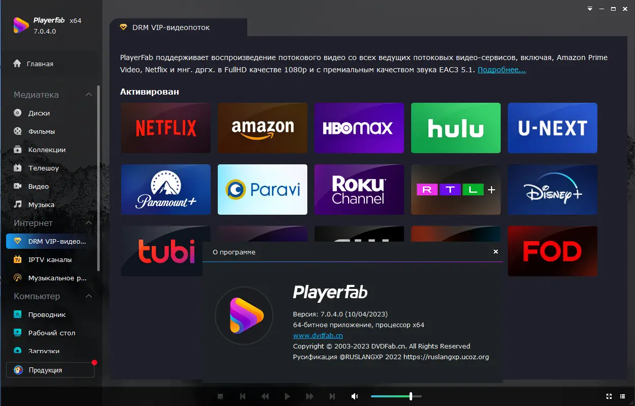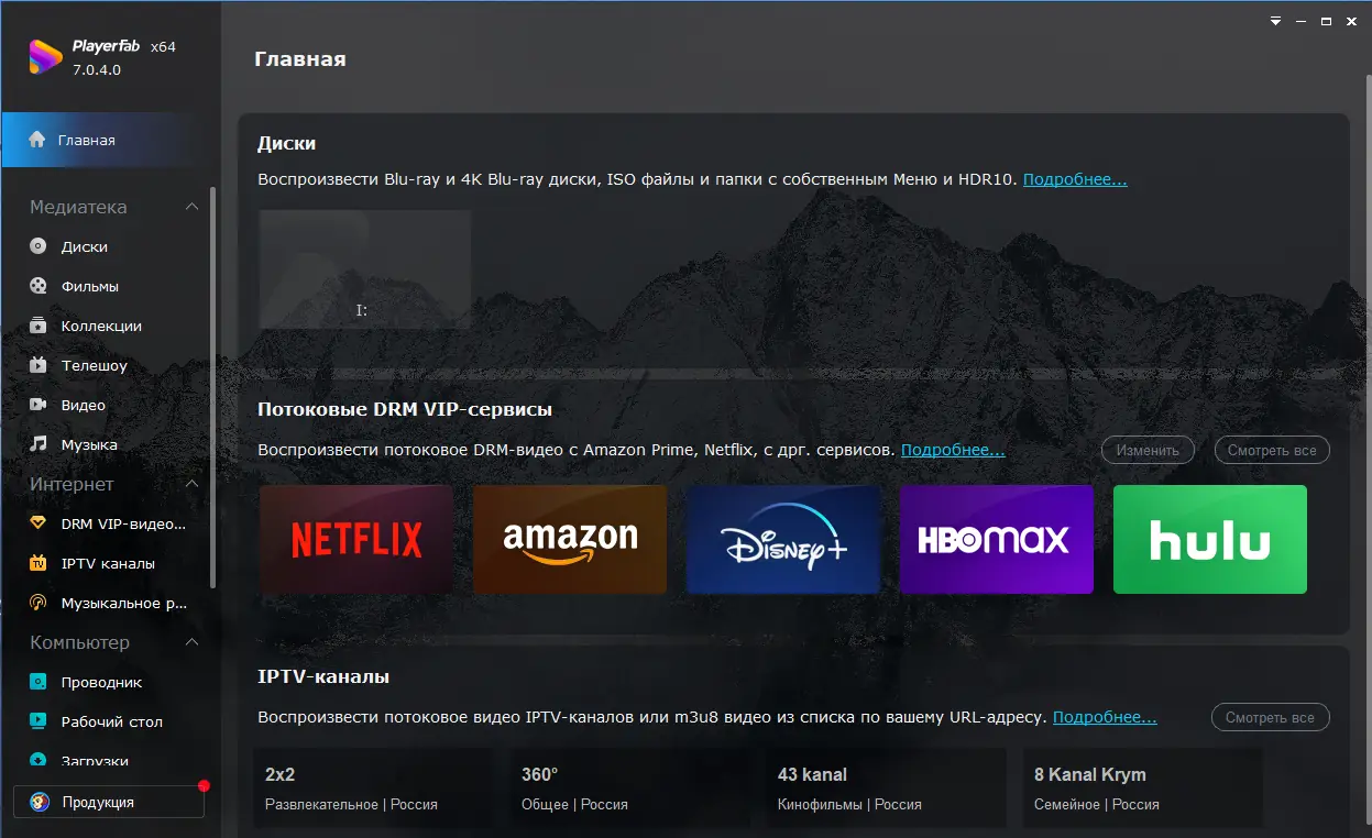 PlayerFab — это современный проигрыватель, разработанный для комфортного просмотра локальных фильмов, ТВ-шоу и потокового видео. Он поддерживает воспроизведение DVD, Blu-ray, UHD дисков и предлагает расширенные возможности для просмотра потокового контента в реальном времени. Благодаря поддержке широкого спектра потоковых сервисов, таких как Amazon, Netflix, Tubi и Peacock, PlayerFab позволяет наслаждаться любимым контентом без лишних усилий и с высоким качеством изображения и звука.