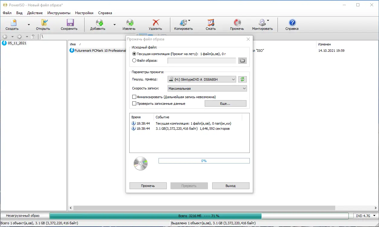 - Создание ISO образов из файлов на жестком диске или с CD/DVD.