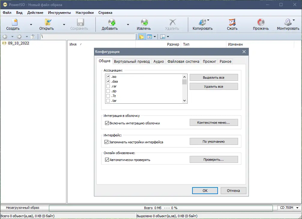 - Создание ISO образов из файлов, папок или CD/DVD дисков.