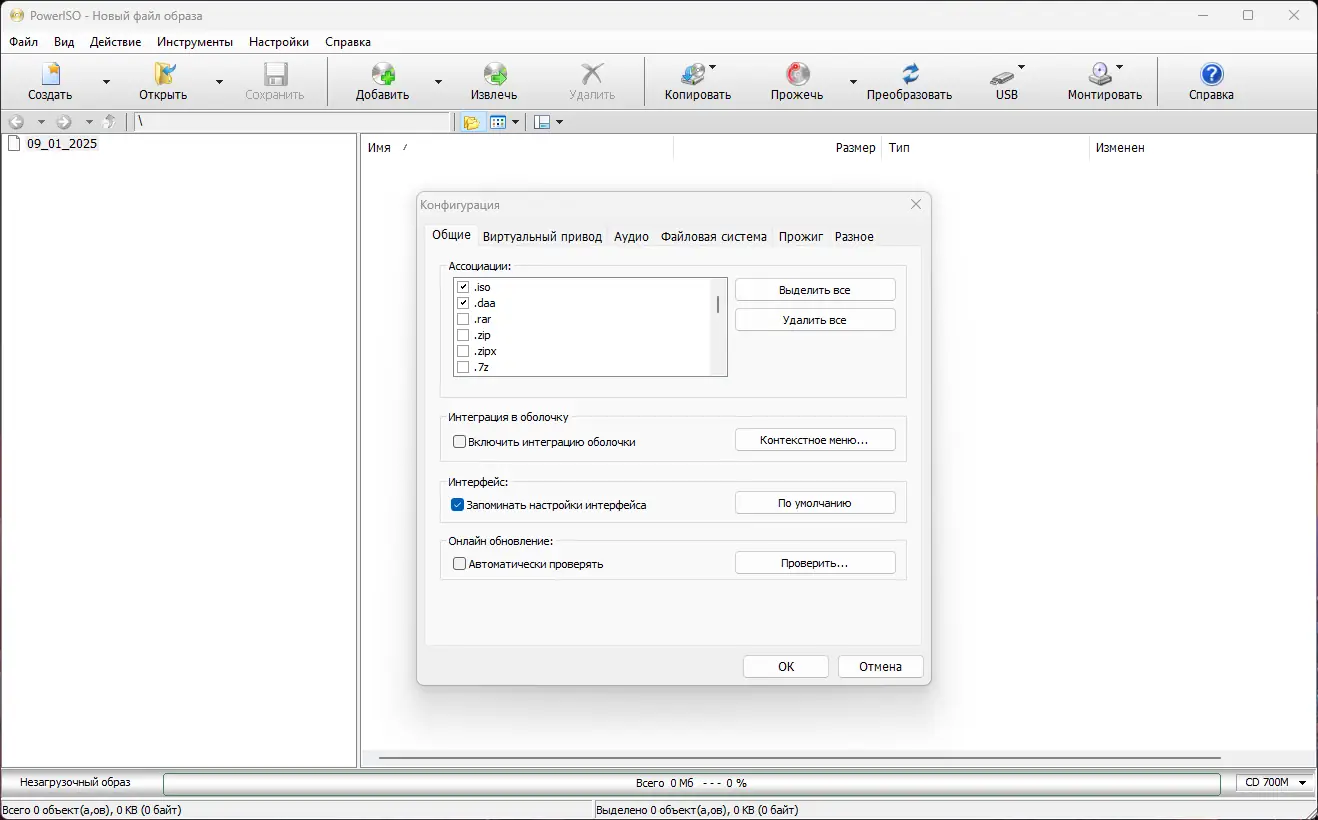 - Настройте параметры интеграции с системой: добавление в контекстное меню Проводника, ассоциации с файлами образов, установка виртуального привода.