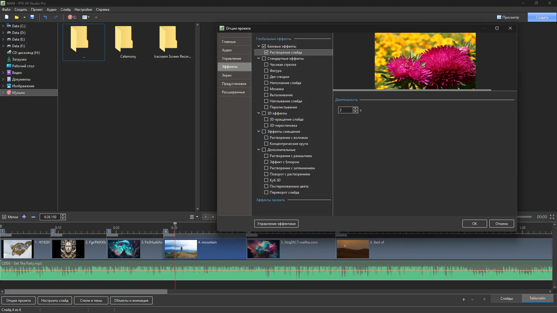 - Большое количество эффектов и настроек для индивидуализации презентаций.