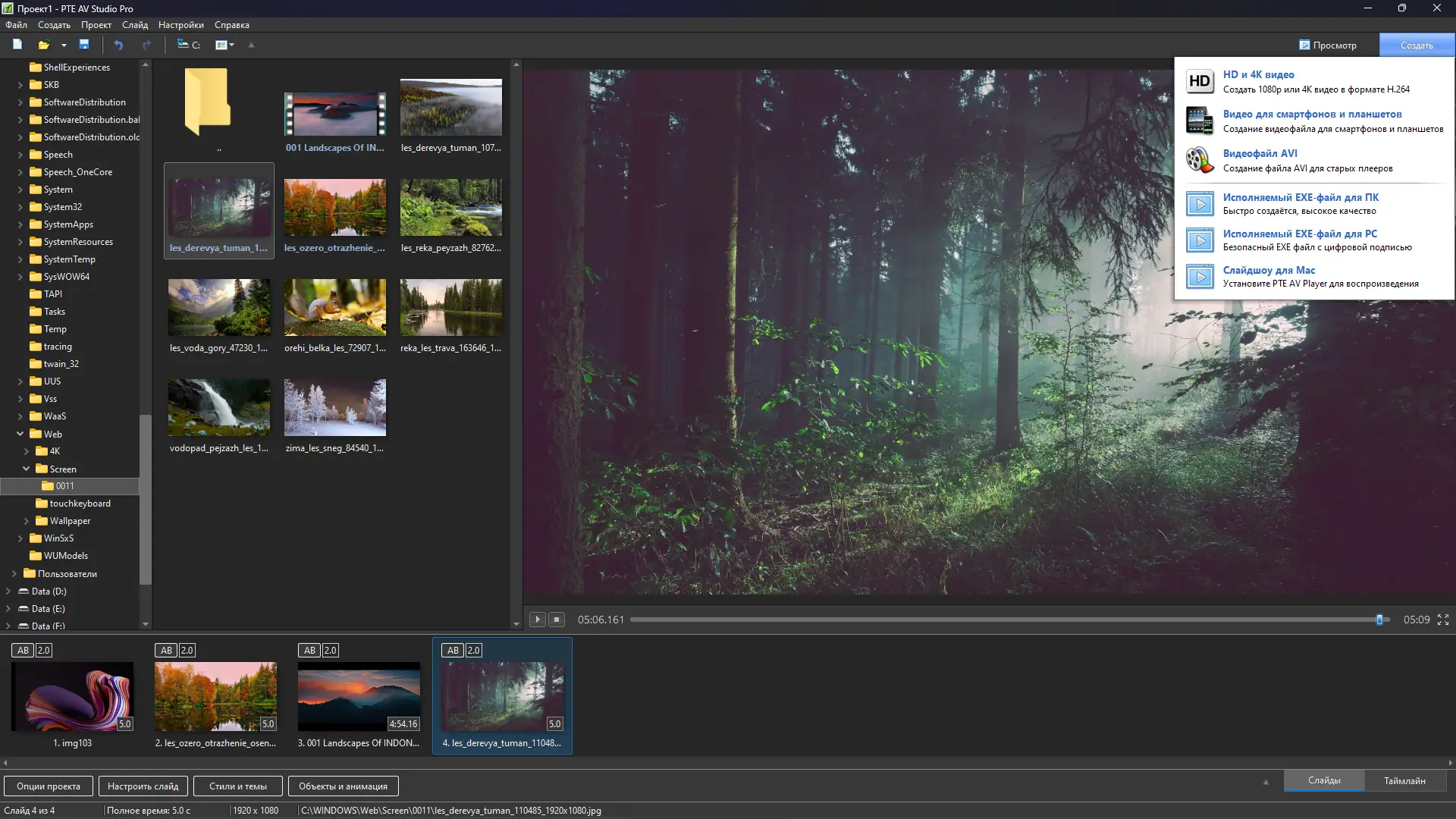 PTE AV Studio — это развитие программы PicturesToExe Deluxe, предназначенной для быстрого и удобного создания самозапускаемых презентаций, слайд-шоу, скринсейверов и видеофайлов из ваших фотографий. С помощью данной программы легко объединить изображения, музыку и текст, создавая уникальные проекты для различных целей. Возможность добавлять комментарии, звуковое сопровождение и фоновую музыку делает ваши презентации более информативными и привлекательными. PTE AV Studio позволяет защитить проекты паролем, установить дату окончания действия или создать полностью профессиональный продукт, который будет запущен на любой Windows-платформе, поддерживающей x32 или x64 Bit архитектуру.