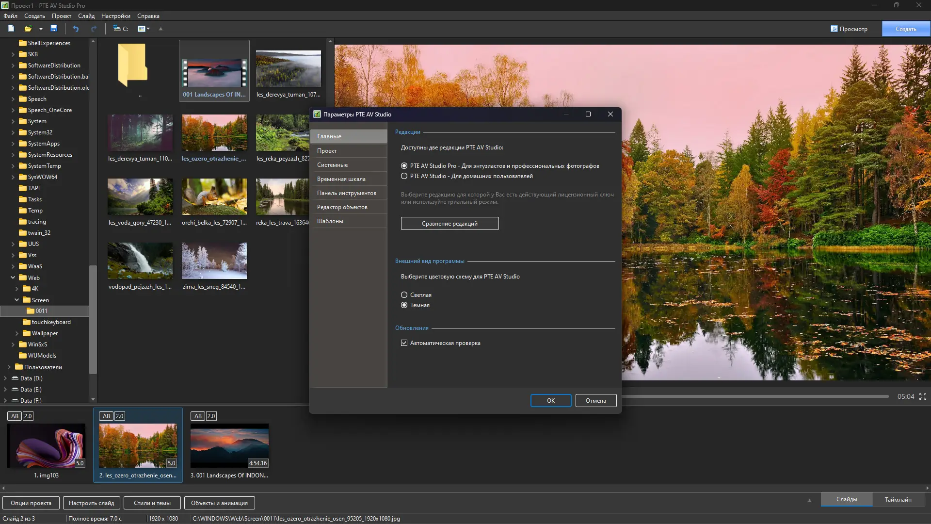 Профессиональное программное обеспечение для создания презентаций, фотоальбомов и видеофайлов с богатым набором эффектов и настроек.