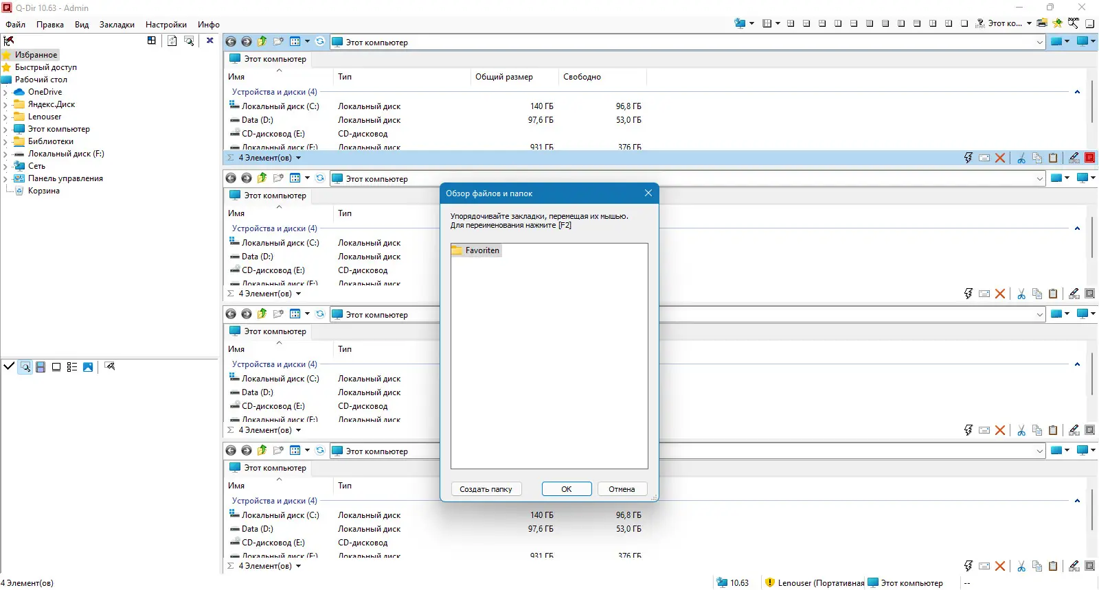 - Поддержка вкладок для одновременной работы с несколькими папками