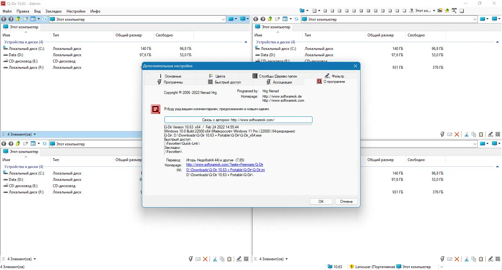 Данная программа предоставляет пользователю возможность управлять файлами с максимально комфортом и эффективностью благодаря четырехпанельному интерфейсу. Она работает с любых съемных устройств, включая USB-флешки, диски и сетевые ресурсы. Интерфейс легко настраивается, поддерживает вкладки и быстрый доступ к часто используемым папкам через специальные ссылки «Quick-Link’s». Встроенные функции просмотра изображений, фильтрации и выделения файлов цветом делают работу с файлами интуитивно понятной и быстрой. Поддержка архивов ZIP, протоколов FTP, системных папок и ярлыков помогает интегрировать управление файлами в профессиональные процессы.