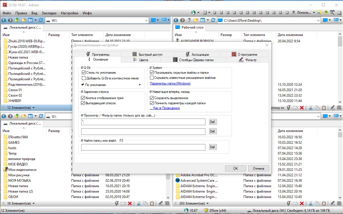 Также реализована удобная система закладок для быстрого доступа и режим предварительного просмотра изображений и файлов, что повышает общую эффективность работы с файлами и папками.