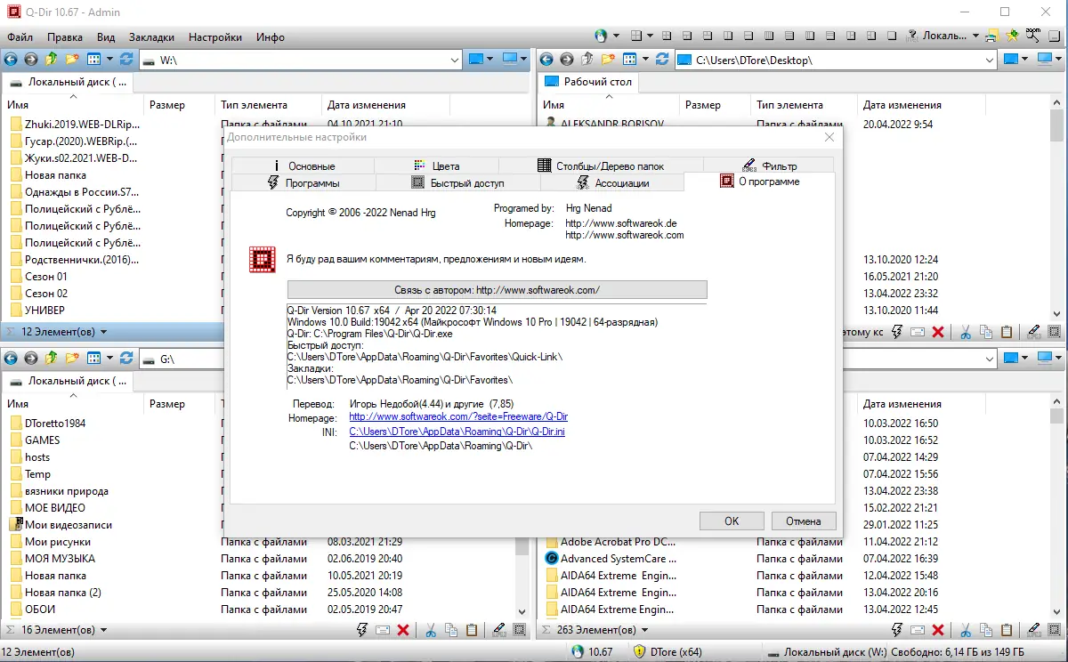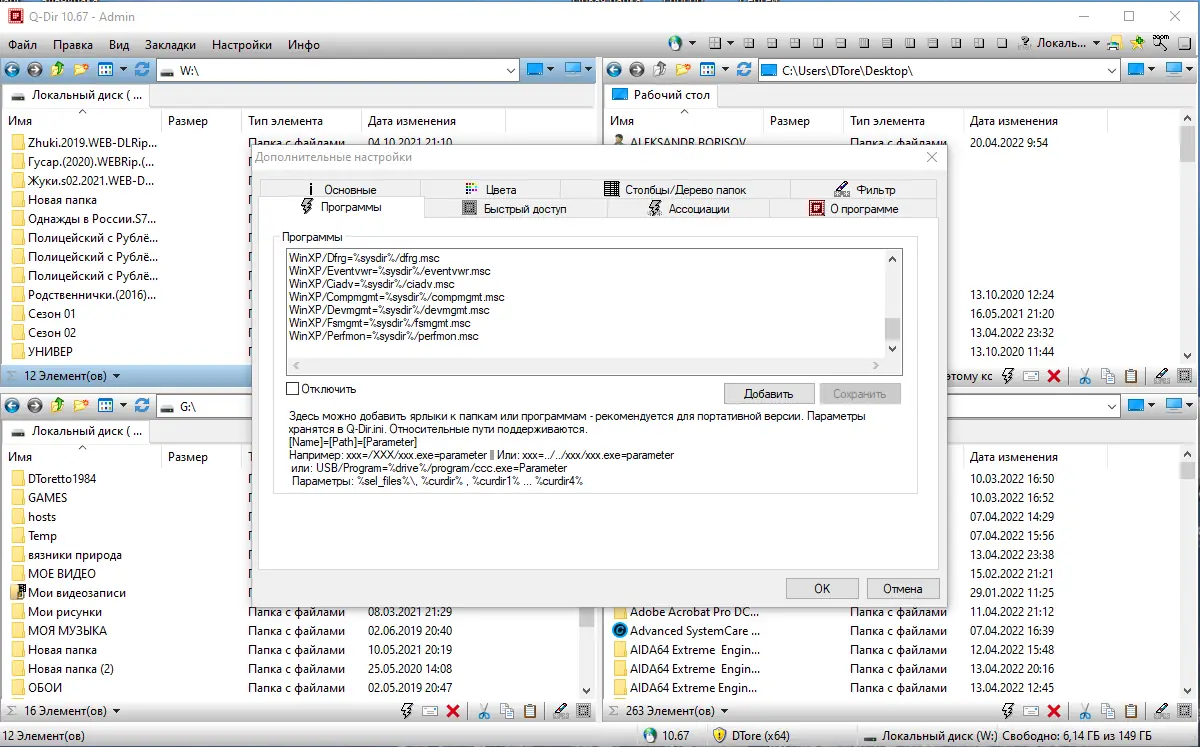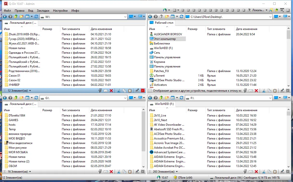 Файловый менеджер с уникальным четырехпанельным интерфейсом и широкими возможностями по работе с файлами, предназначенный для быстрого и удобного управления данными на различных устройствах.
