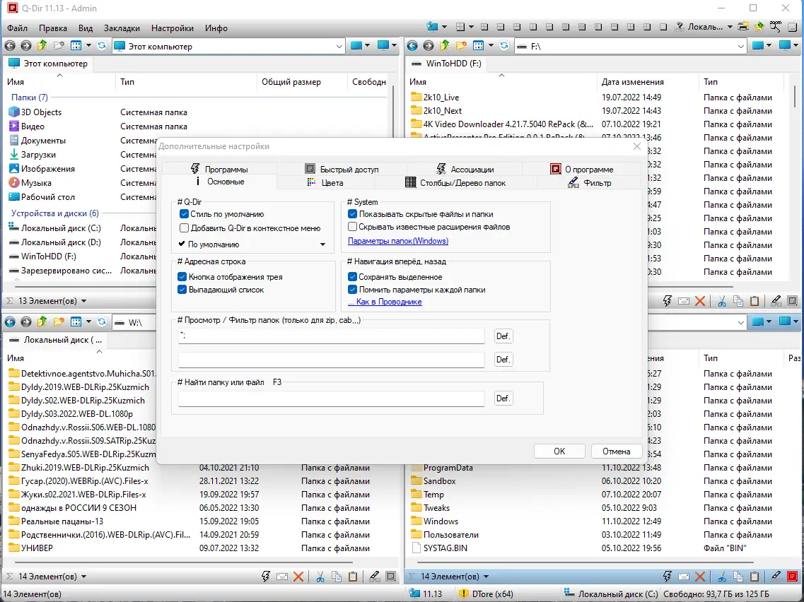- Настроить параметры под свои нужды и начать работу с файлами и папками