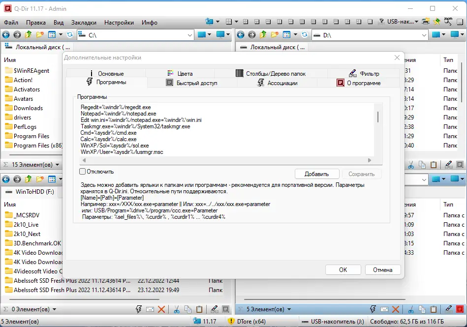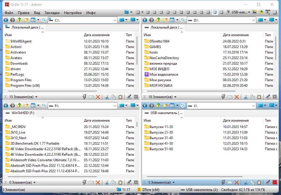 Это мощное и многофункциональное приложение, которое работает с любого съемного устройства и поддерживает многоязычный интерфейс. Q-Dir позволяет получать мгновенный доступ к папкам, включая ZIP-архивы, FTP-сервера, сетевые ресурсы и системные папки. Благодаря четырёхпанельному интерфейсу пользователь может одновременно управлять несколькими директориями, что значительно ускоряет работу с файлами и папками. Встроенная функция drag&drop, возможность выделения файлов цветом, фильтрация и просмотр изображений, а также режим предварительного просмотра — всё это делает управление файлами максимально комфортным и продуктивным.