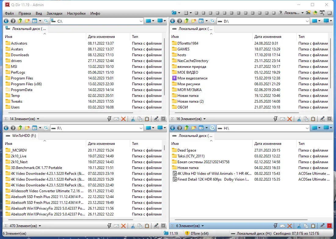 Бесплатный файловый менеджер с уникальным четырехпанельным интерфейсом, предназначенный для удобной работы с файлами и папками.