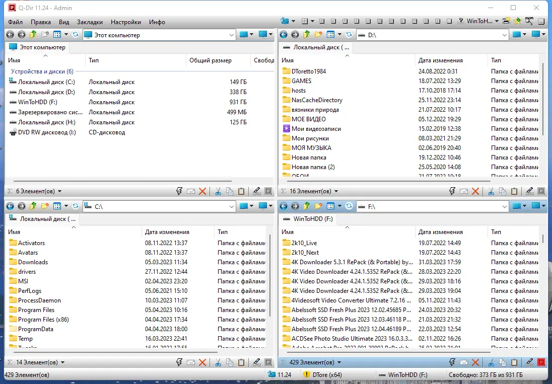 - Поддержка до 12 видов панелей и вкладок для одновременного управления файлами
