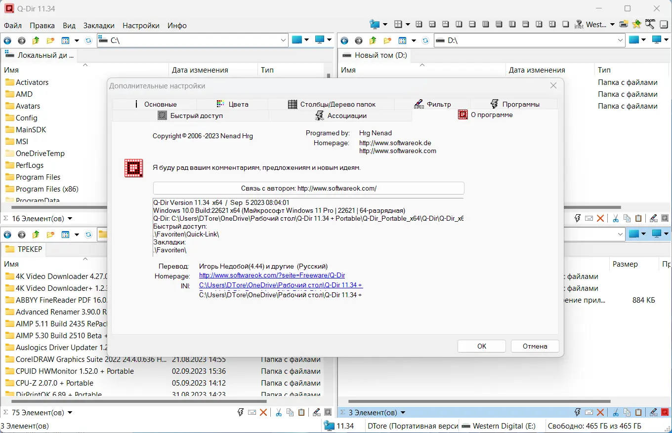 Q-Dir — это уникальный файловый менеджер с оригинальным четырехпанельным интерфейсом, который позволяет работать с файлами и папками максимально эффективно. Совместим с любыми съемными устройствами и поддерживает многоязычный интерфейс для удобства пользователей по всему миру. Программа умеет получать быстрый доступ к часто используемым папкам через ссылки «Quick-Link’s» и поддерживает функции drag&drop, что значительно ускоряет работу. Встроенная поддержка просмотра изображений с функцией «лупа», возможность выделения различных типов файлов цветом, фильтрация и экспорт данных в форматы XLS, CSV, TXT, HTML делают работу с файлами максимально гибкой. В программе есть режим предварительного просмотра файлов, что позволяет быстро просматривать содержимое без открытия отдельных приложений.