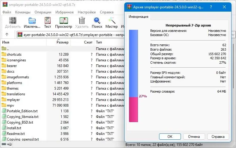SMPlayer — мощный мультимедийный проигрыватель, который позволяет воспроизводить большинство известных форматов аудио и видео без необходимости установки дополнительных кодеков. Программа совместима с Windows 7, 8/8.1, 10 и 11, поддерживает как х32, так и х64 Bit системы и распространяется бесплатно.