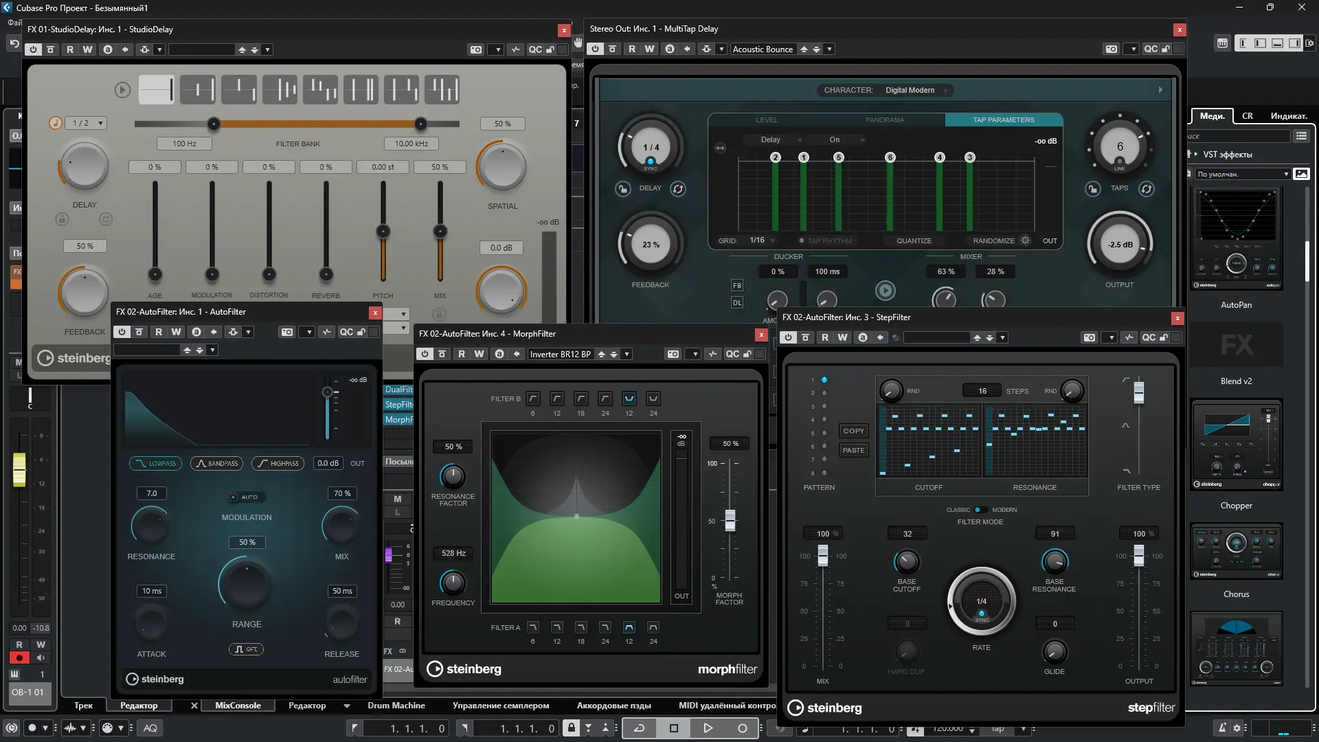 - Поддержка современных плагинов VST 3, с возможностью ручного включения VST 2.
