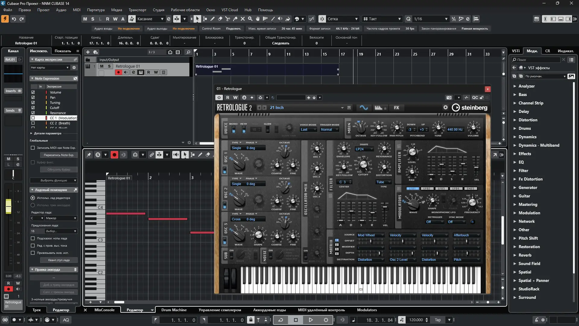 - Мощный набор инструментов для записи и редактирования MIDI и аудио