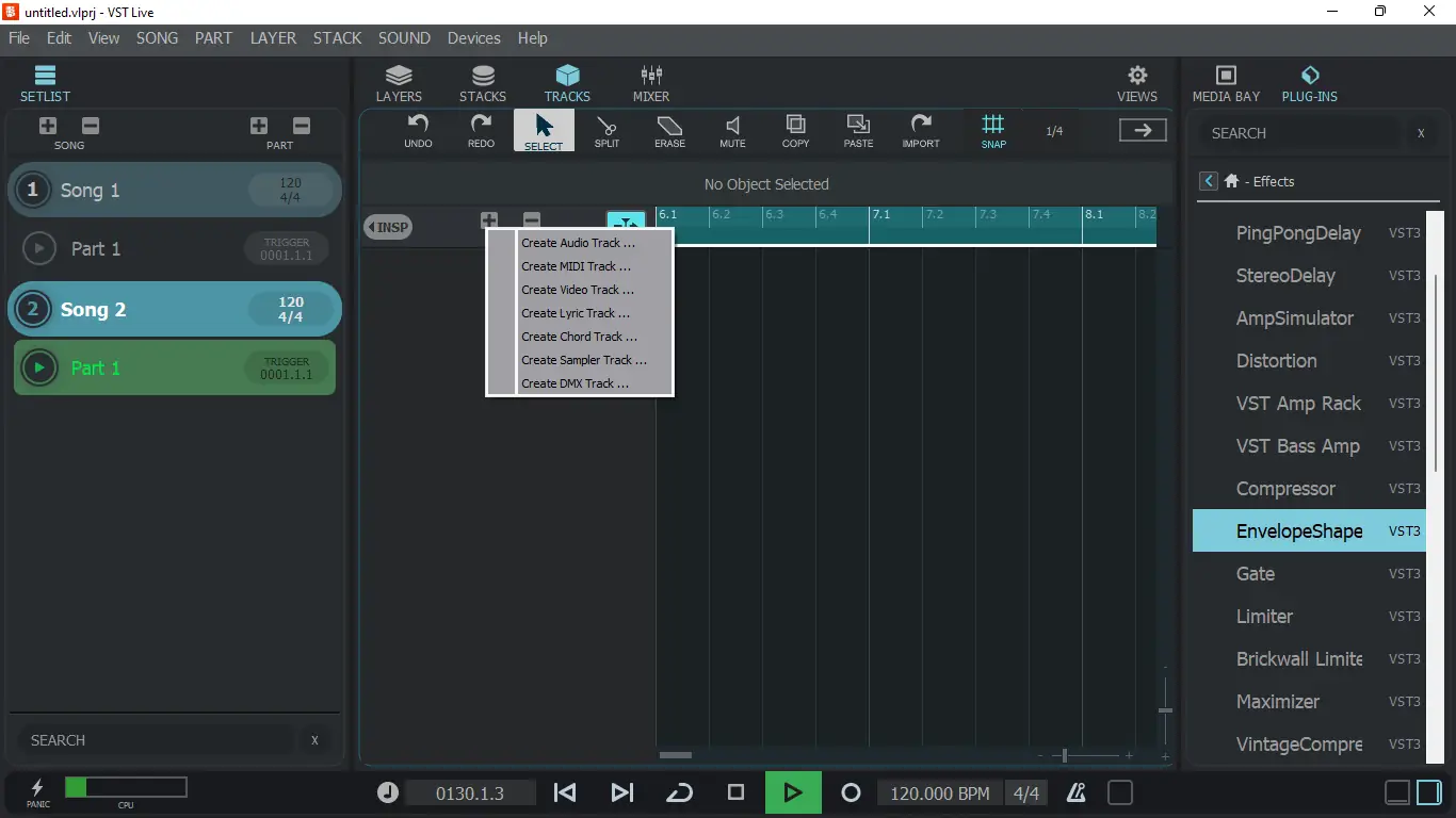 - Импорт данных из Cubase, работа с MIDI-треками и управление световыми сценами DMX